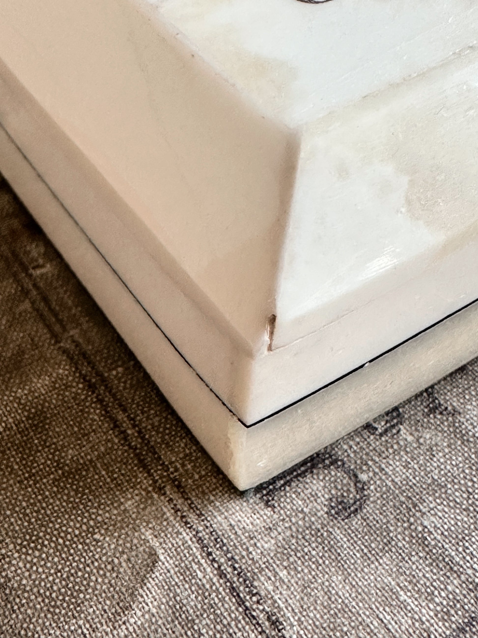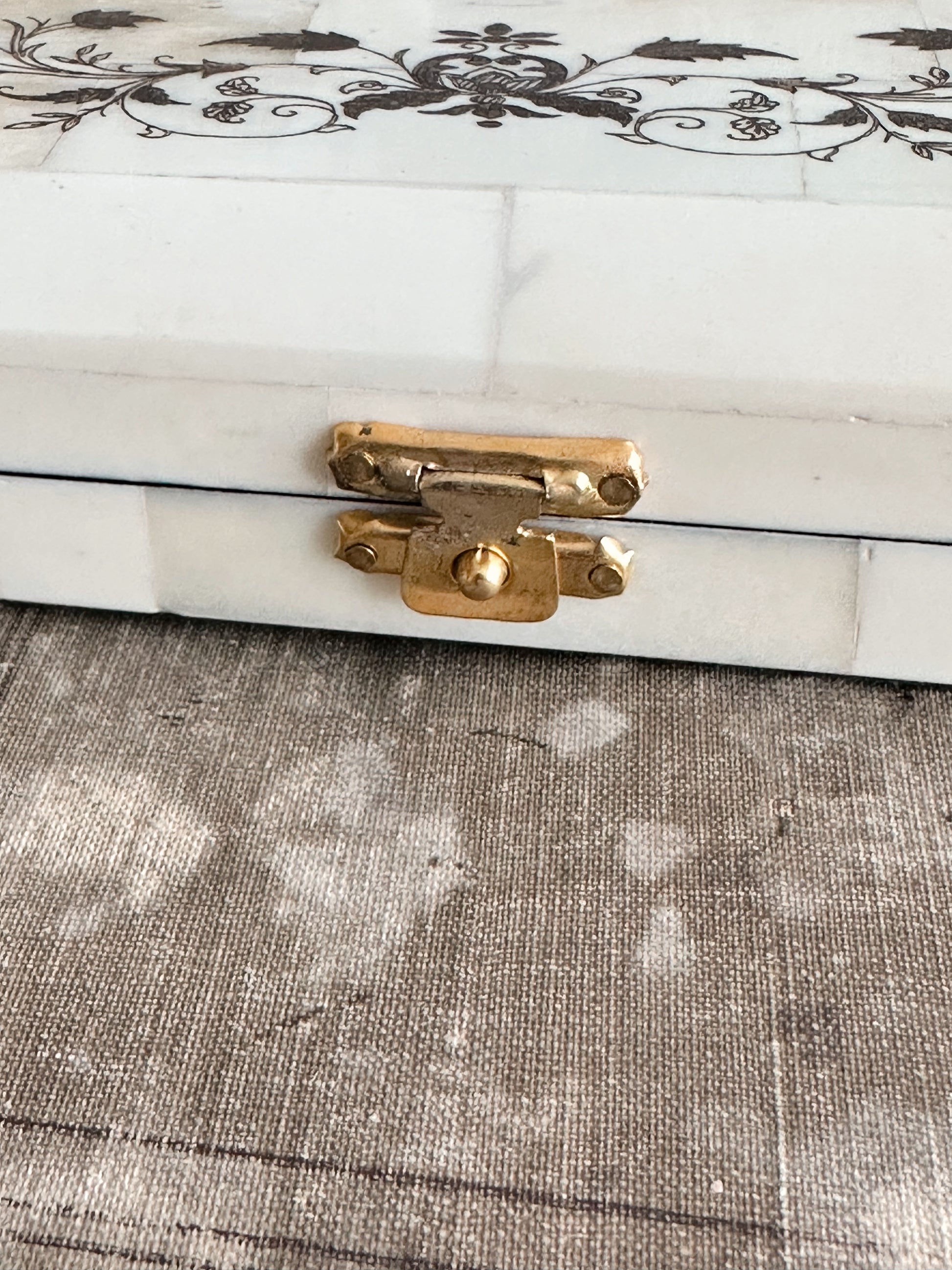 - Slight bone color variations and imperfections enhance the individuality of each box so that no two are alike