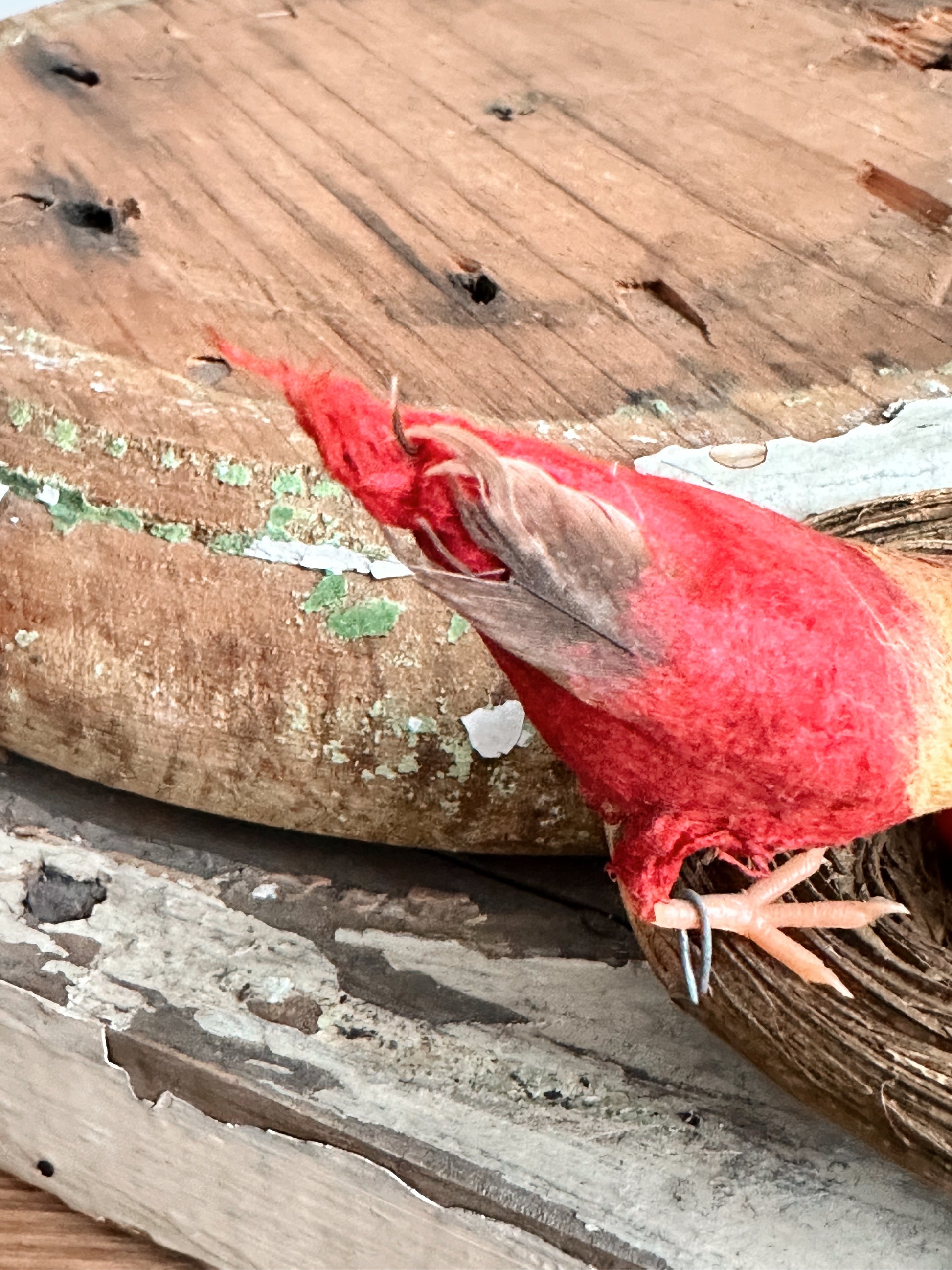 Rare Antique Spun Cotton Bird on a Nest Ornament