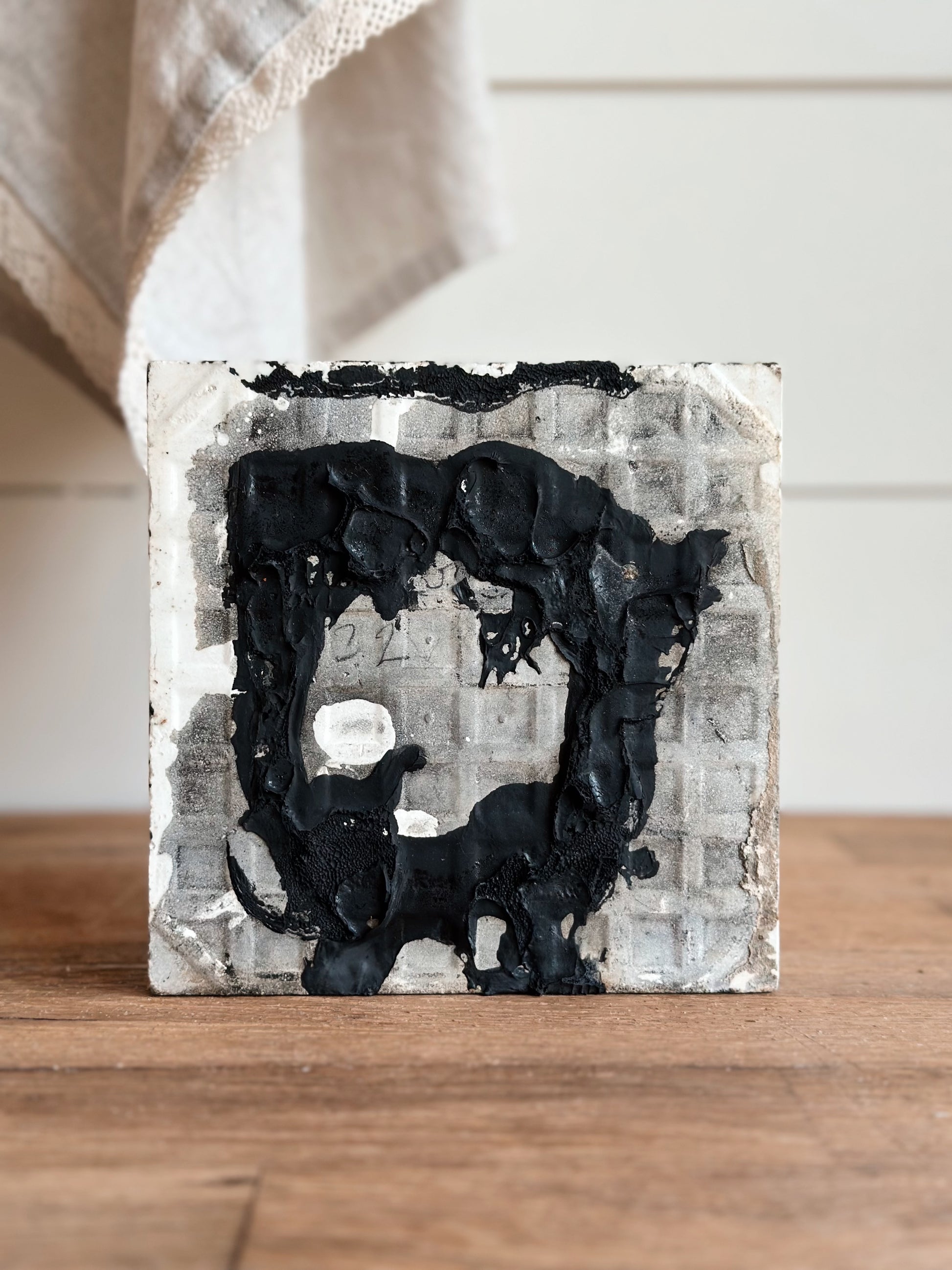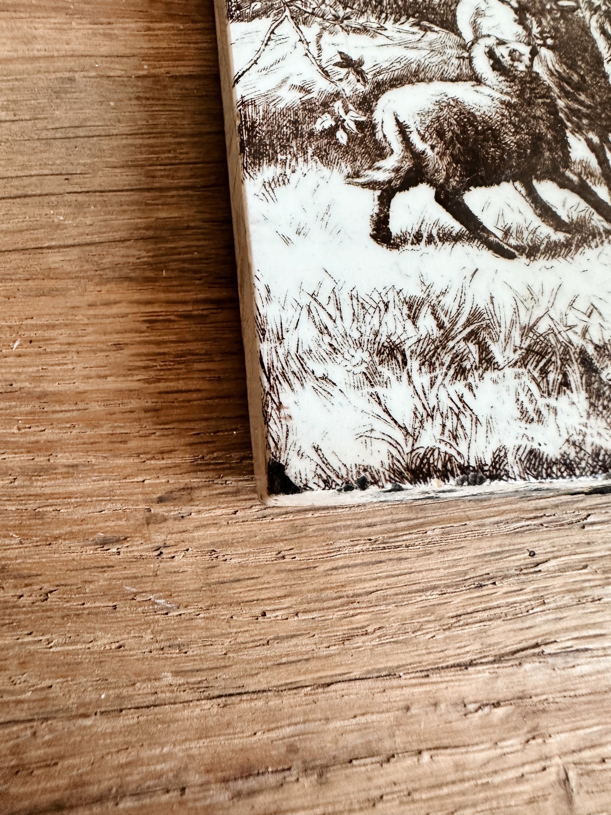 - This tile appears to have been removed from a home. It was likely part of a fireplace surround.