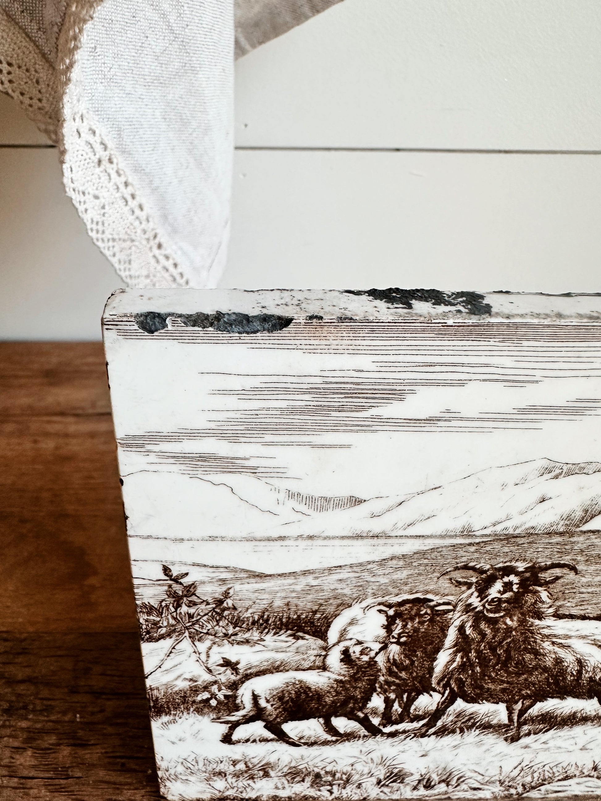 Antique MINTON William Wise Farm Animal Tile (goats)