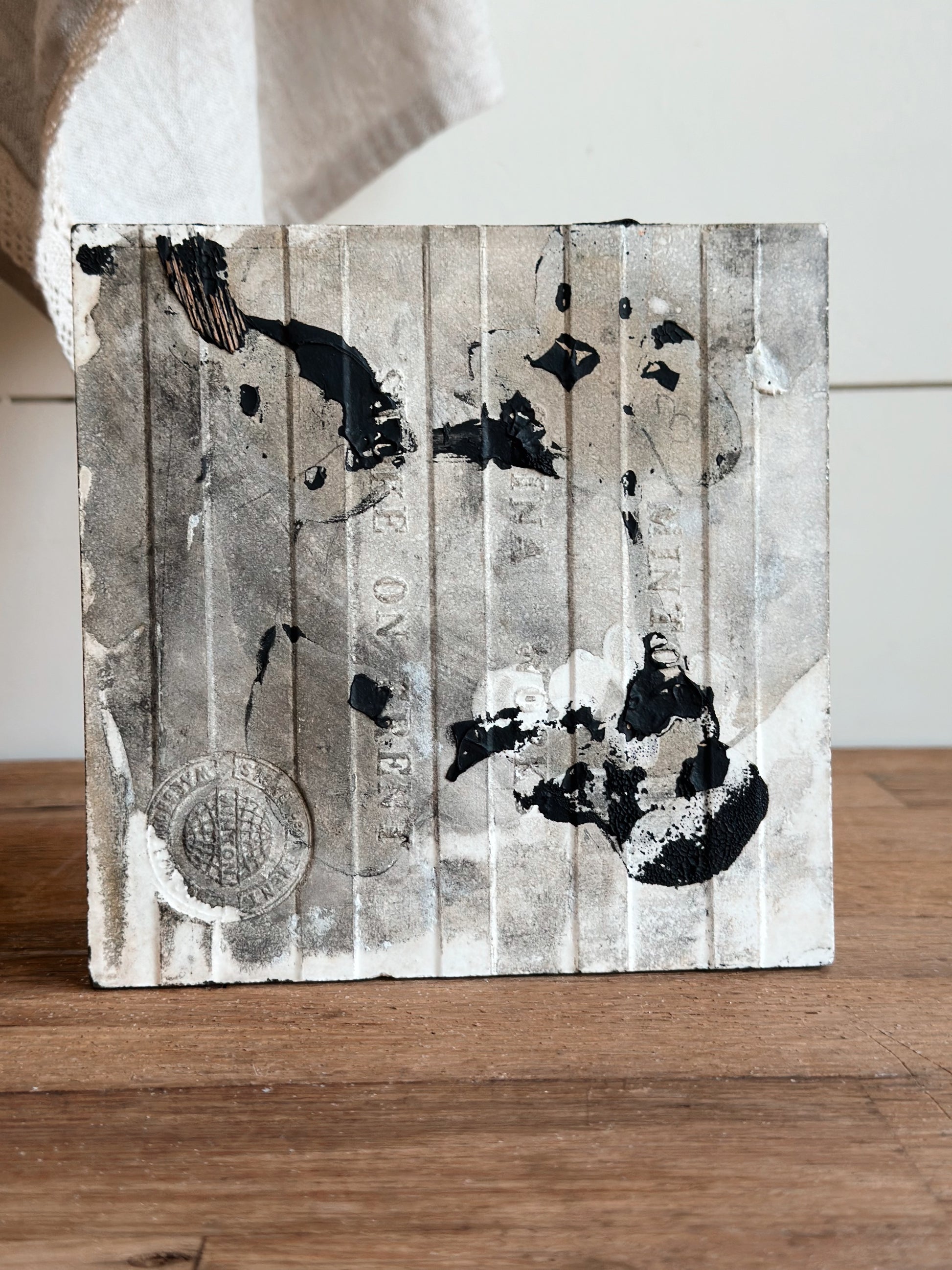 - This tile appears to have been removed from a home. It was likely part of a fireplace surround.