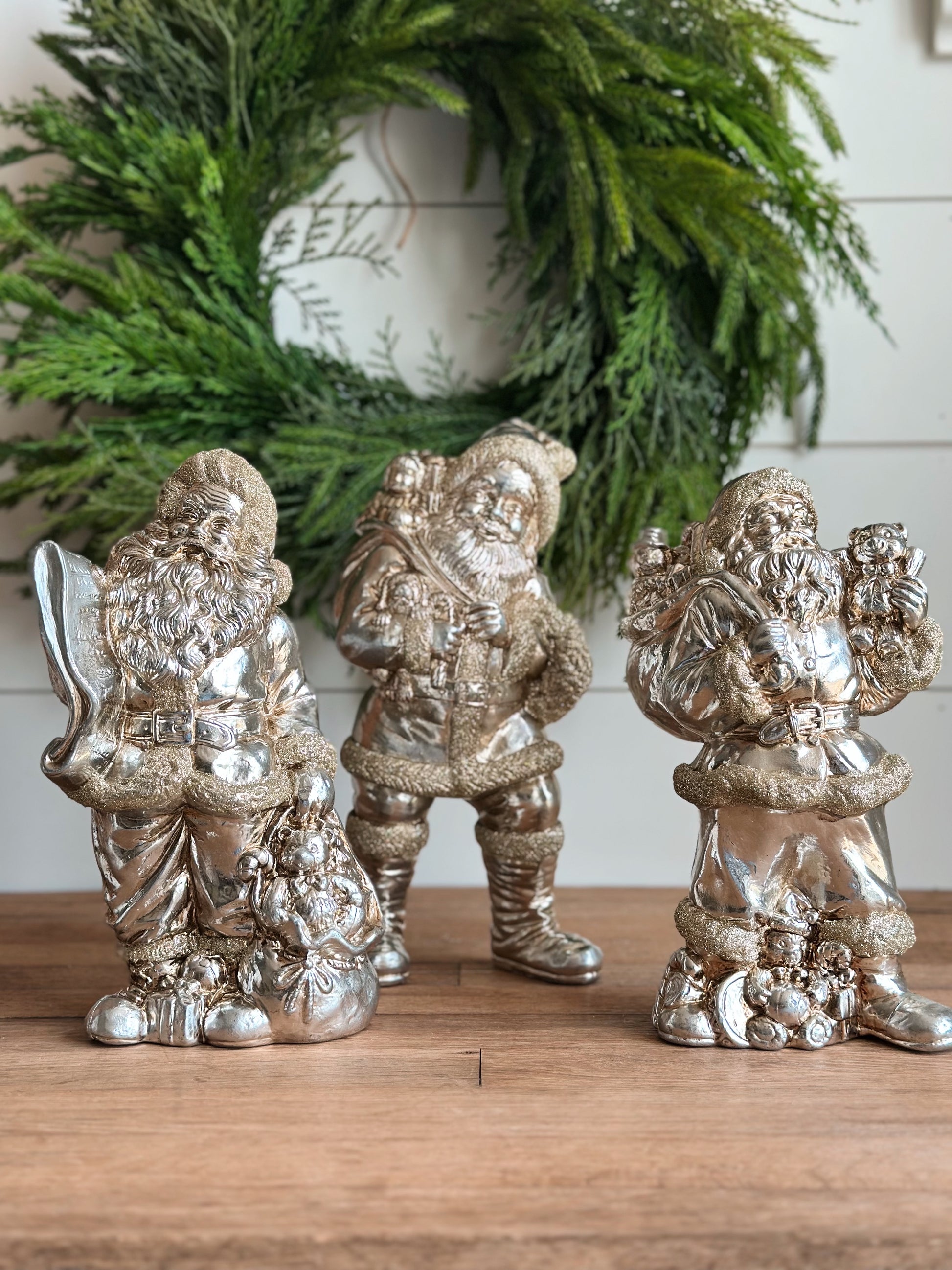 - The antiqued silver appearance makes these jolly guys look much heavier than they are. They’re actually made of plastic, but you wouldn’t know it until you pick them up