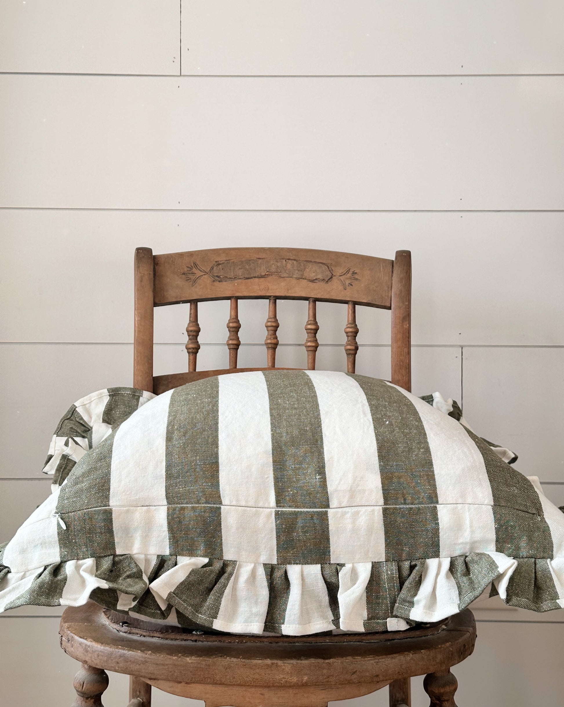 Ruffled Deep Moss Stripe Pillow Cover