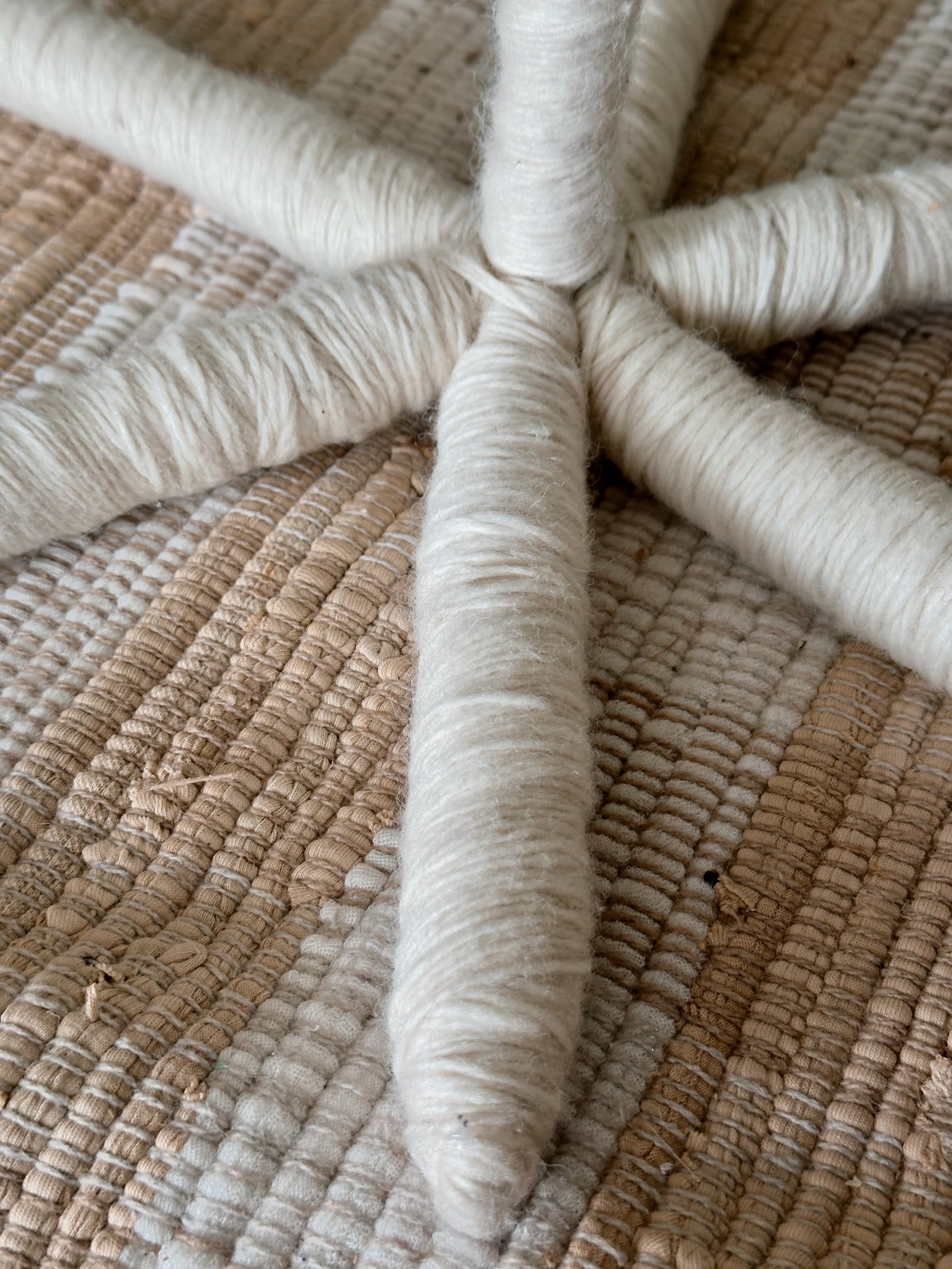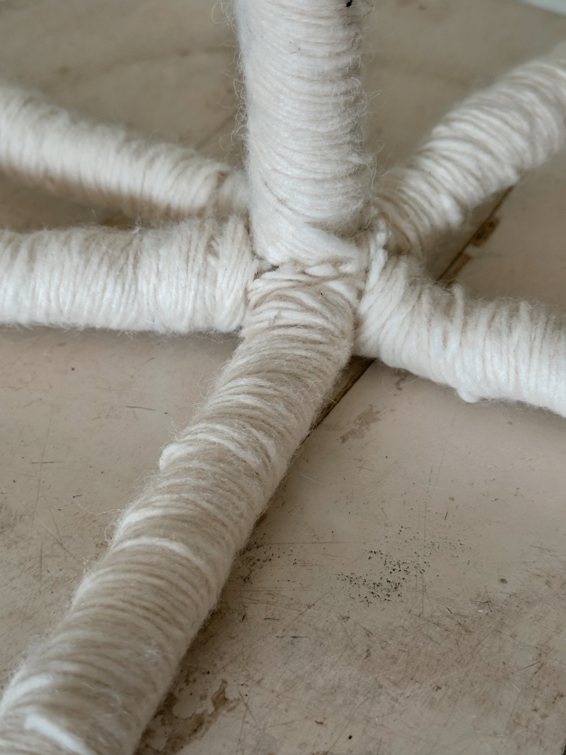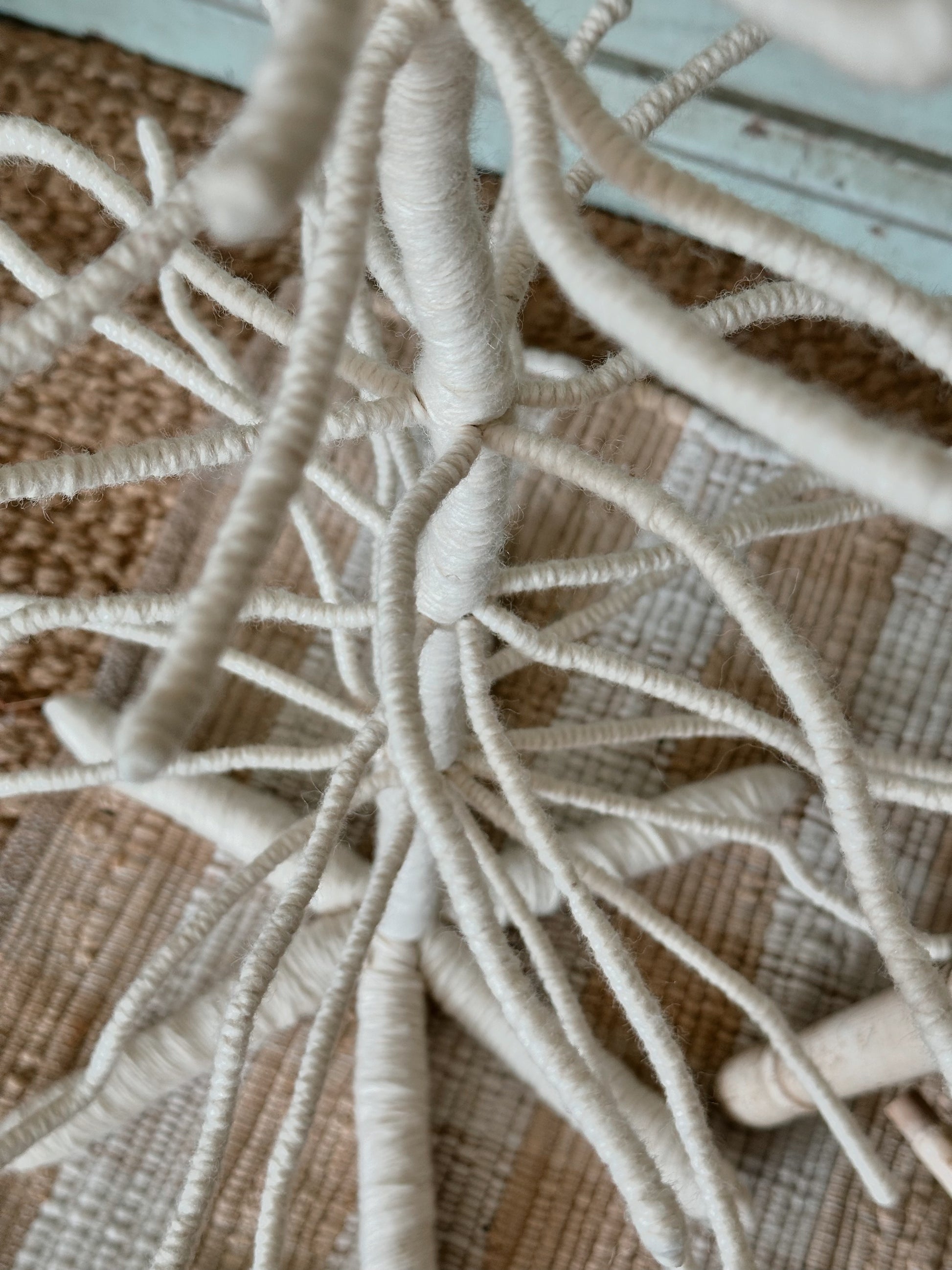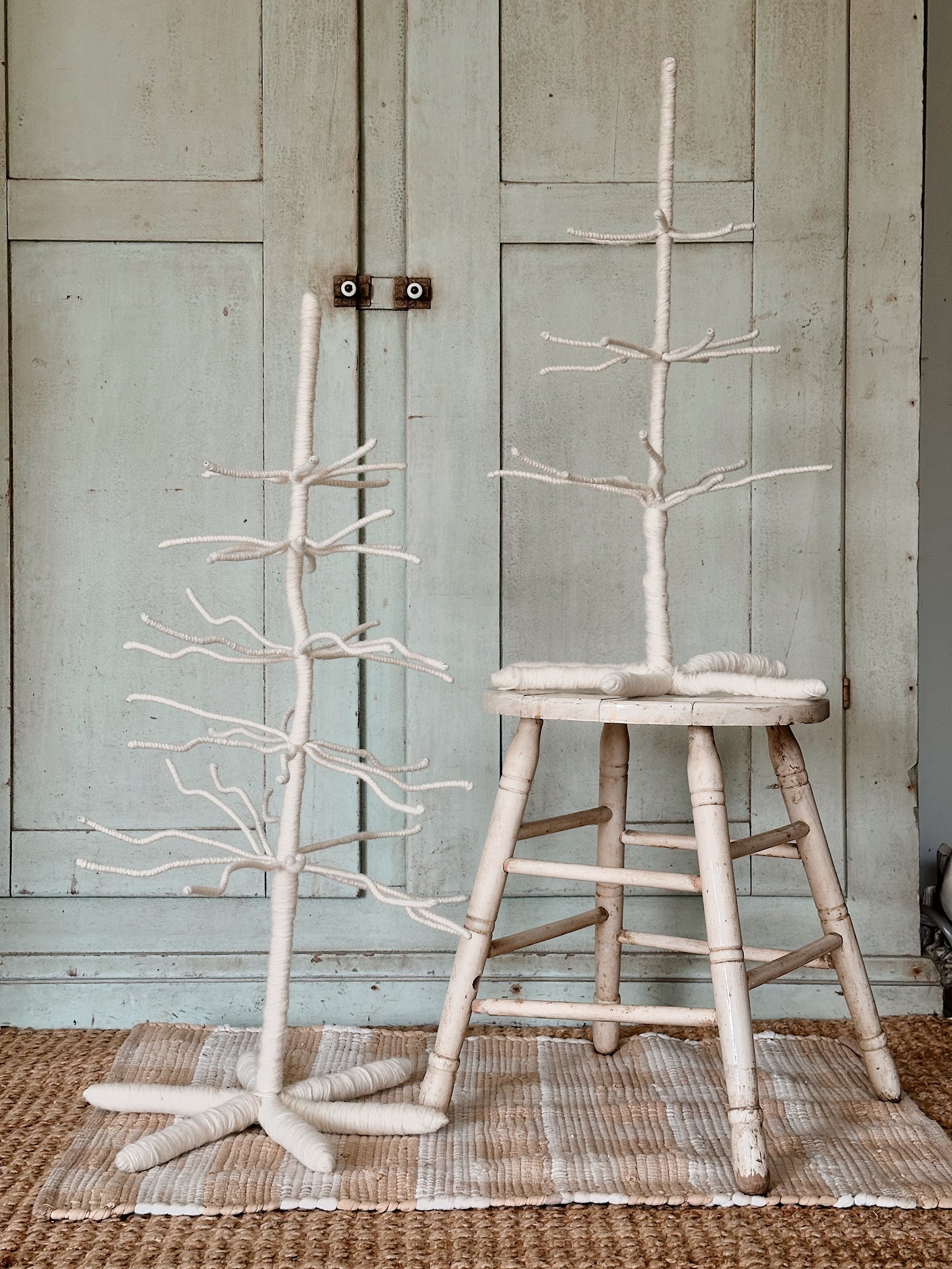 - This charming tree is made with natural woolen yarn wrapped around a wire body.