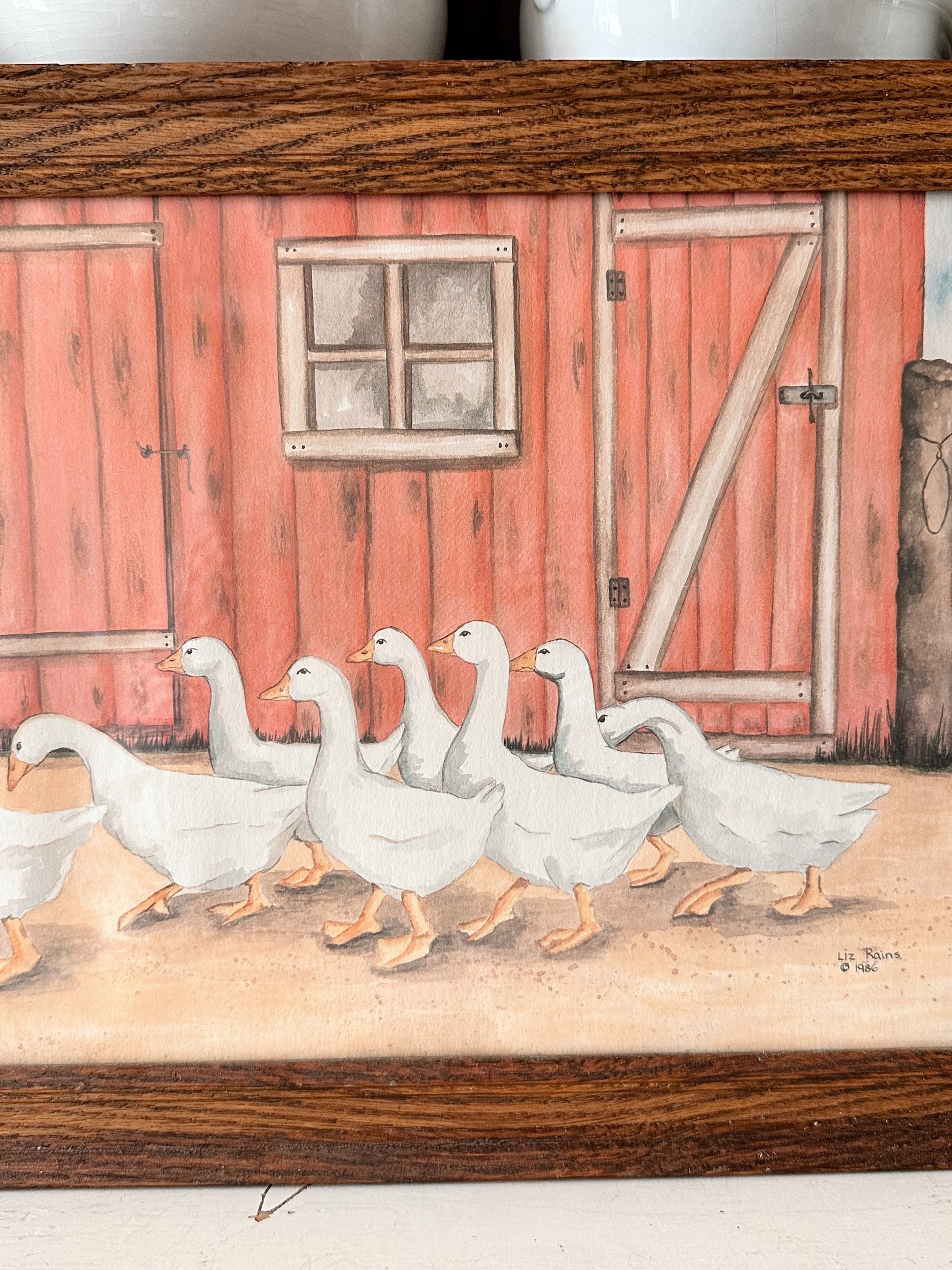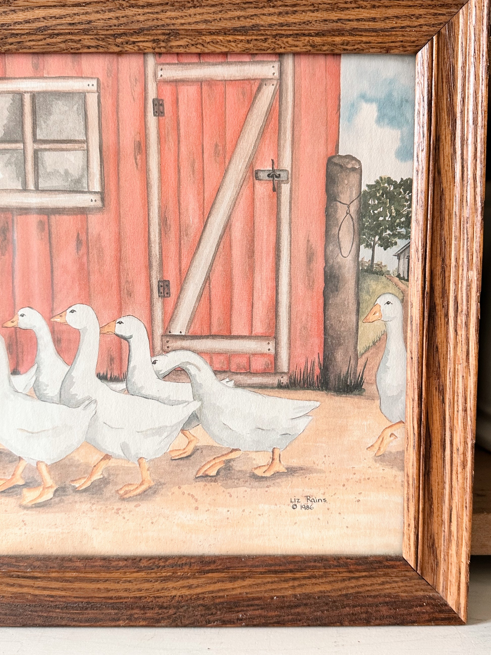 Vintage Ducks By a Barn Print, Framed