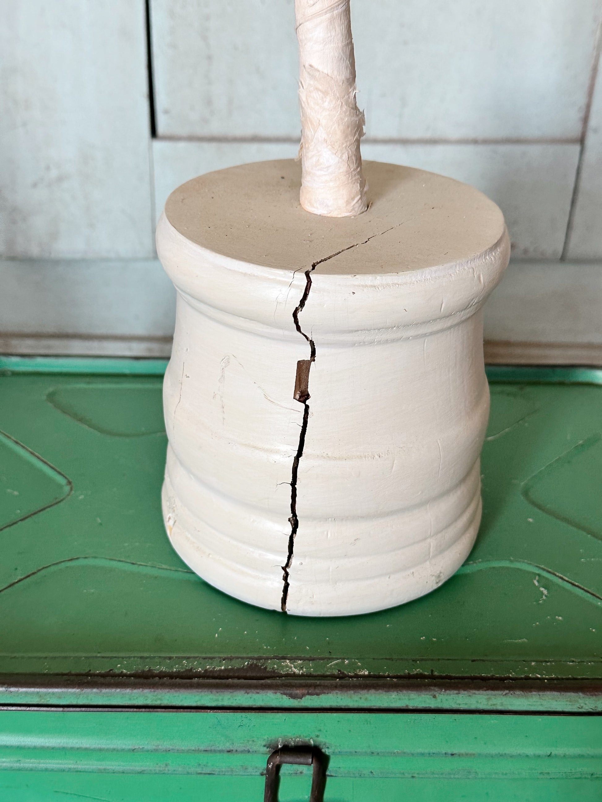 • A few of the branches on the bottom have some wear and the wood base is cracked. See photos