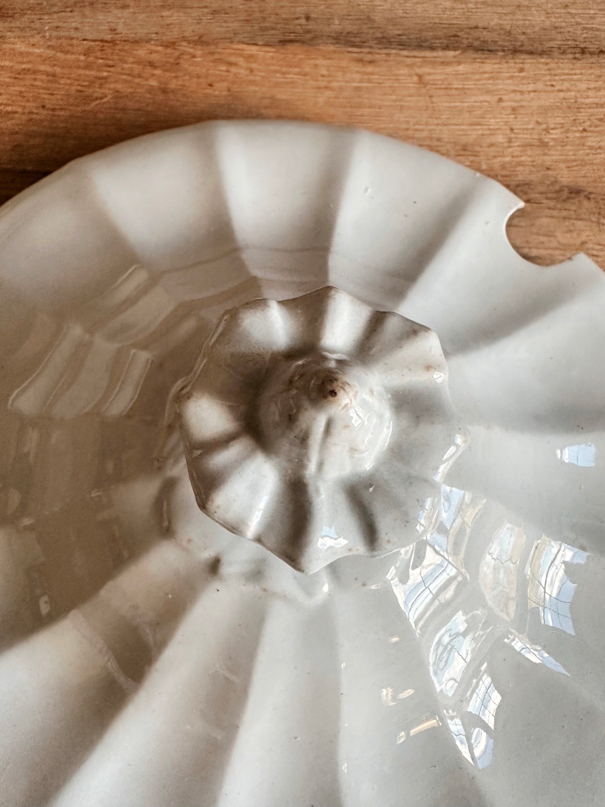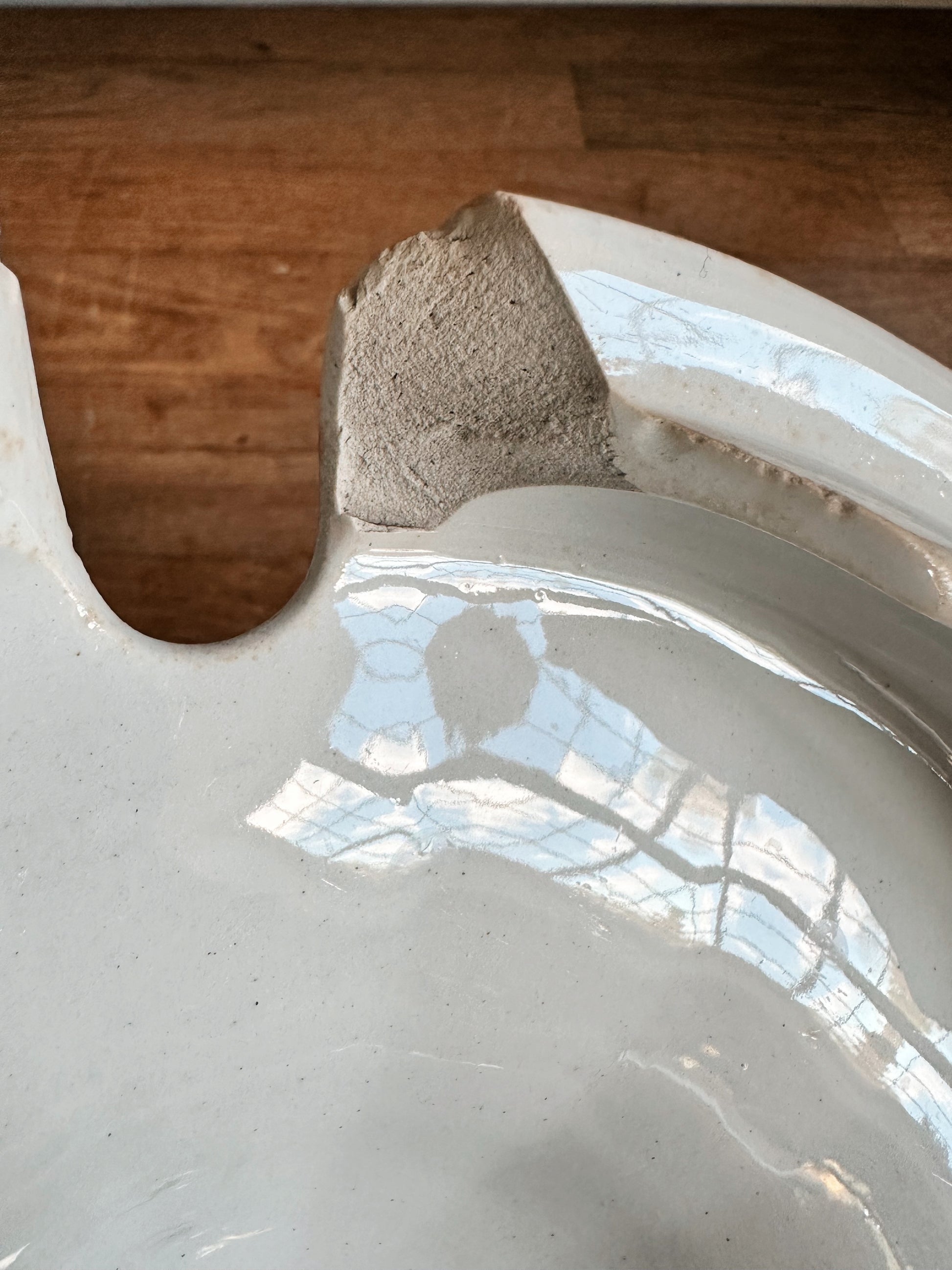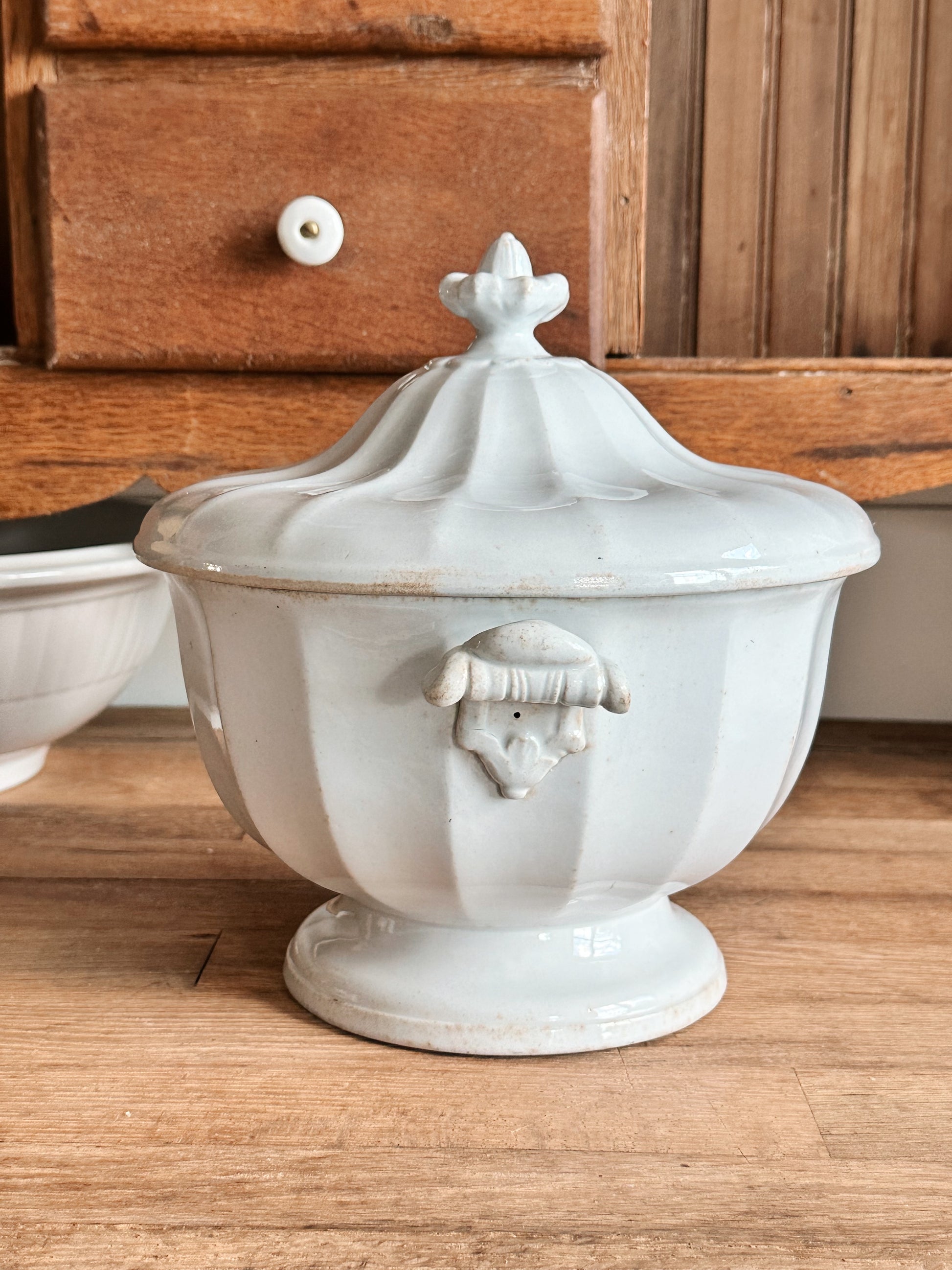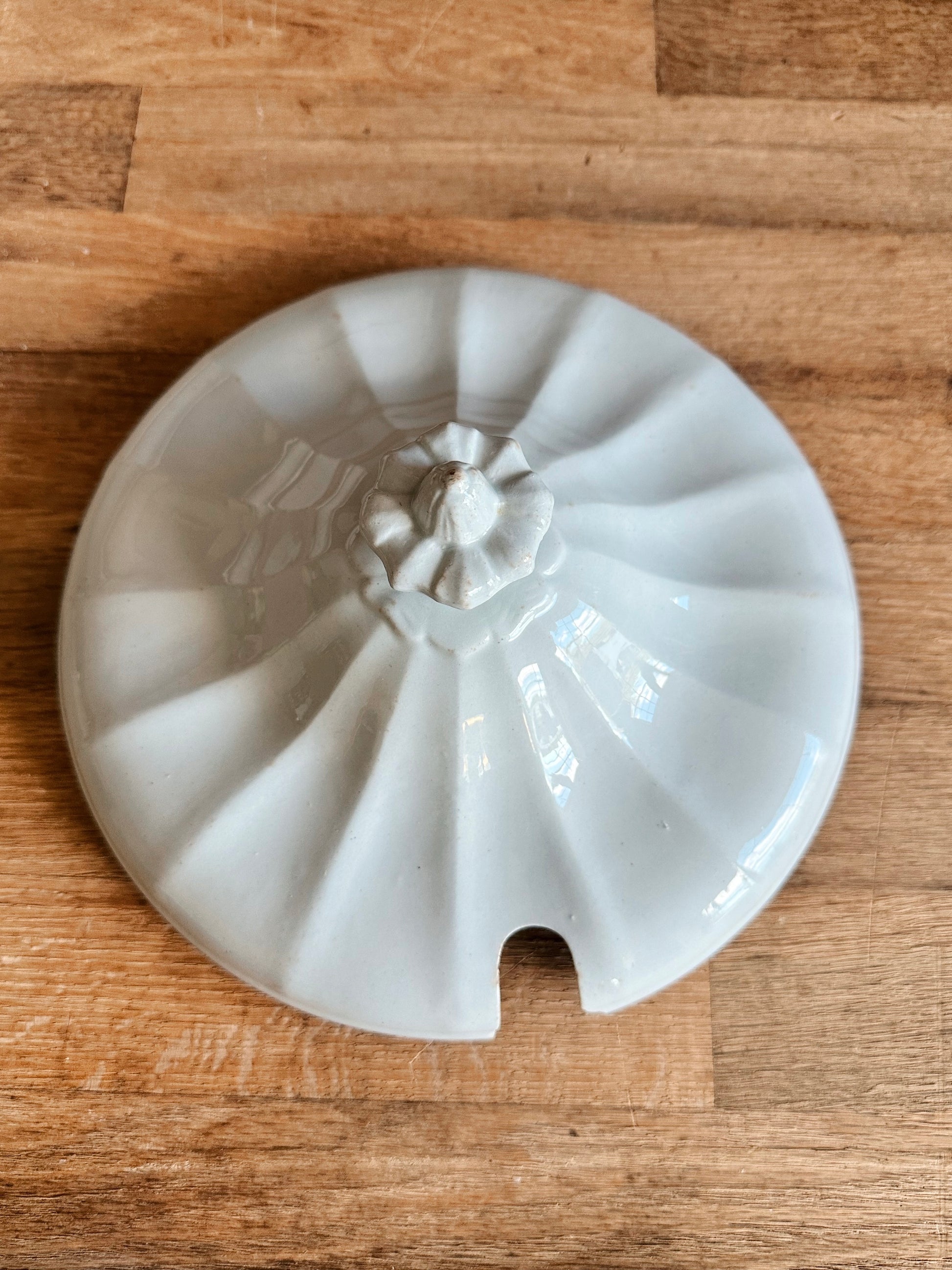 - There is one chip on the underside of the lid near where the ladle would have gone and some flea bites on the inside bottom of the bowl.