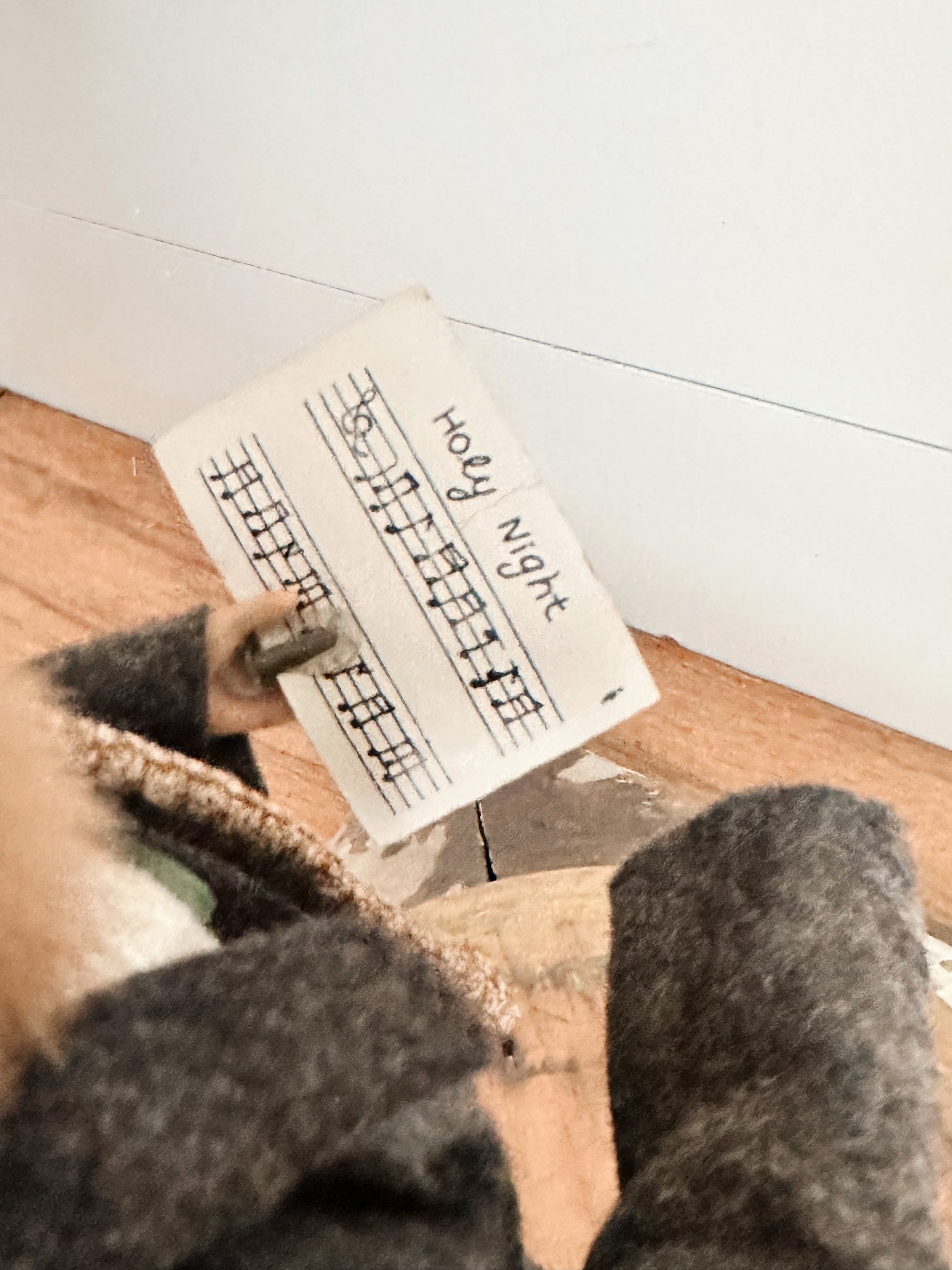 - Molded plastic caroler on a wood base