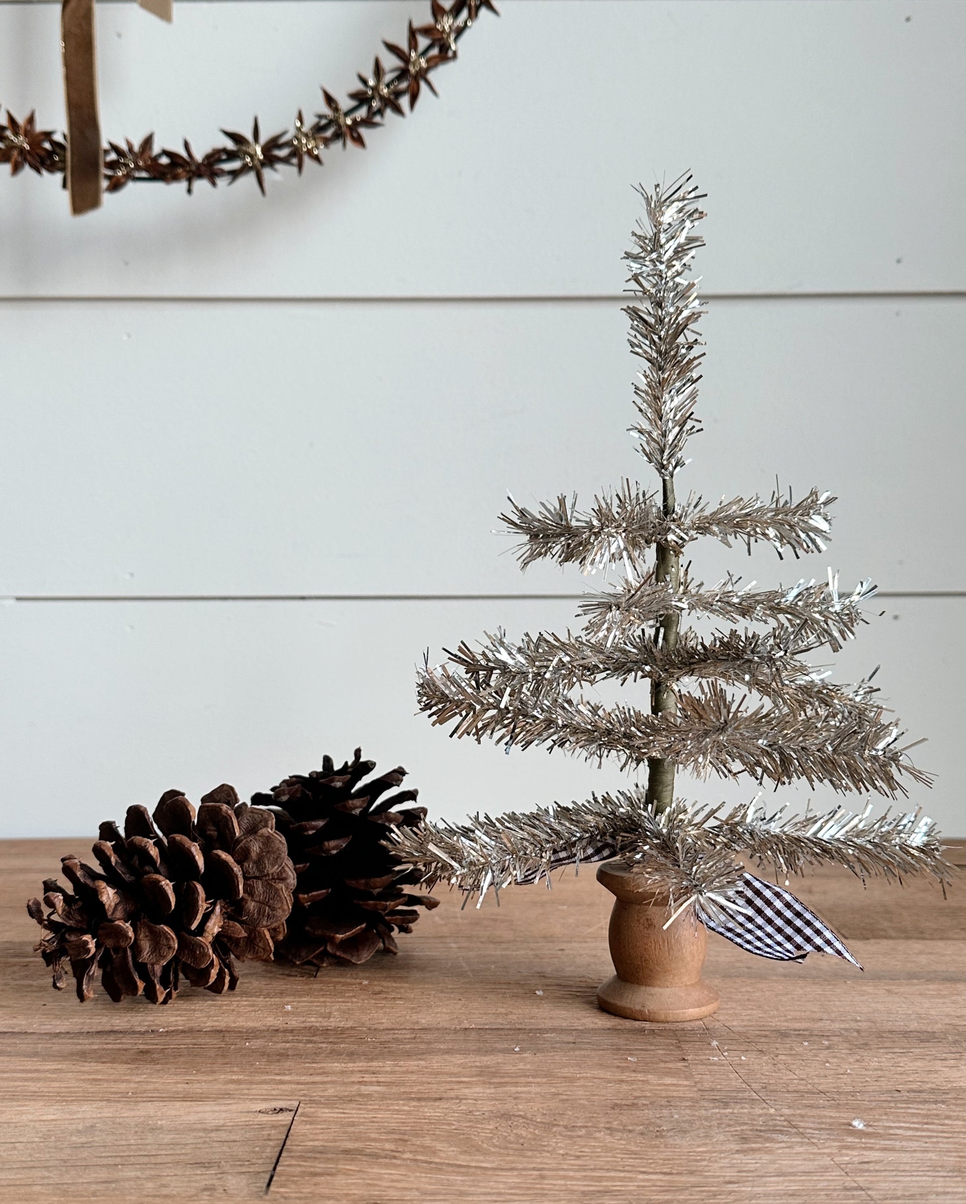 • The tinsel tree was handmade and requires a light touch when fluffing and adjusting.  We will provide instructions with each purchase