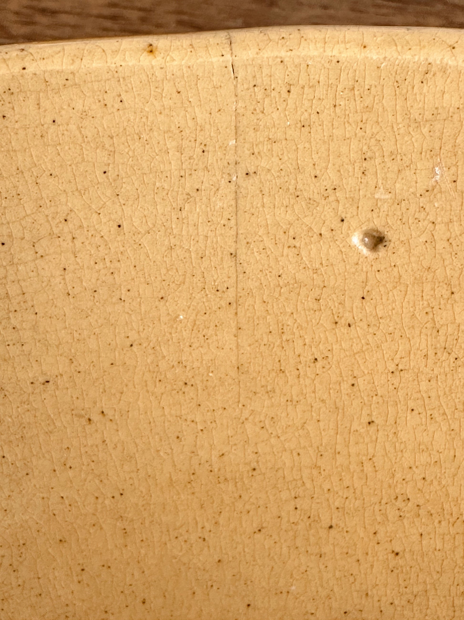 - There are two small imperfections on one side. The glaze is over the chips so they appear to be manufacturing defects